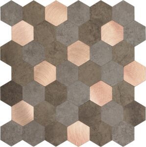 La geometría del hexágono, combinada con texturas que imitan a la perfección el mármol, la piedra o el relieve cerámico, aporta una profundidad y un estilo moderno que los azulejos planos convencionales no pueden alcanzar.